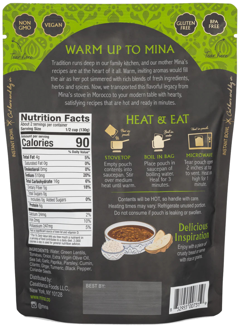 I recently tried the Addis Moroccan Lentil Stew by Mina, and I have to say, I was very impressed! The stew is packed with flavor and the perfect balance of spices, making it a truly delicious and satisfying meal. I appreciate that this stew comes in a convenient six-pack, making it easy to have a healthy and delicious meal on hand whenever I need it.Overall, I would highly recommend the Addis Moroccan Lentil Stew by Mina to anyone looking for a tasty and convenient meal option. Whether you're looking for a quick and easy lunch or a satisfying dinner, this stew is sure to hit the spot.