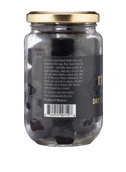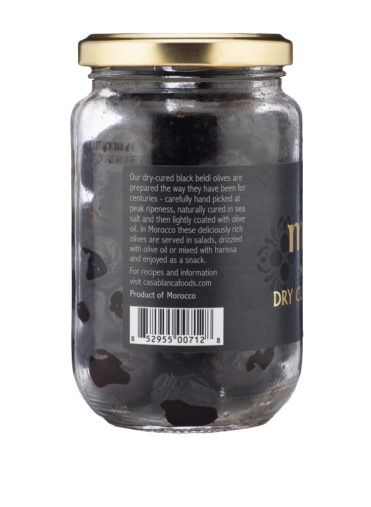 Our exquisite, Moroccan-grown dry-cured black beldi olives are prepared the way they have been for centuries. After being carefully hand-harvested at peak ripeness, they are cured in dry sea salt for three months, then lightly coated with olive oil. The result is a bold and intense olive that faithfully reflects Morocco’s culinary heritage. Showcase these exceptional olives in salads and recipes, or simply enjoy them straight from the jar.