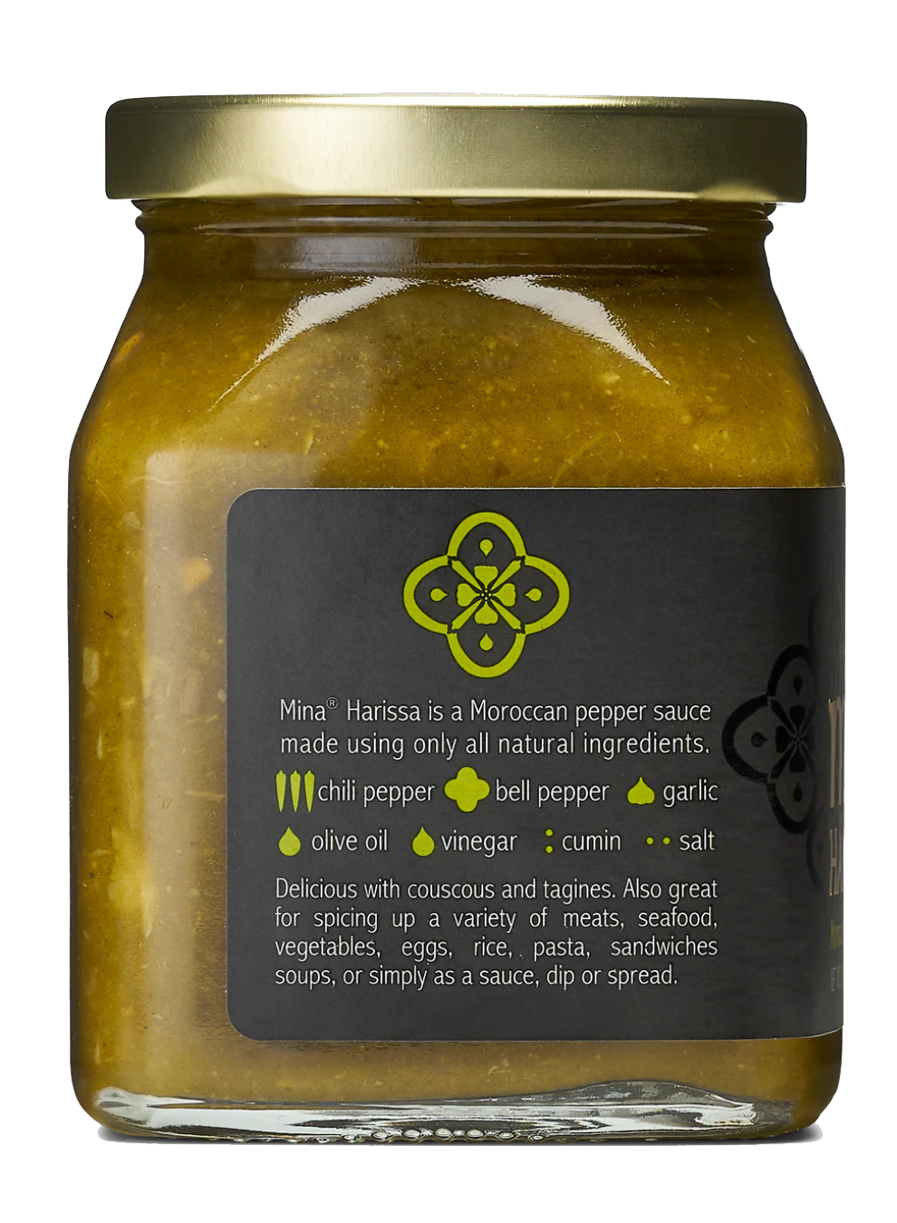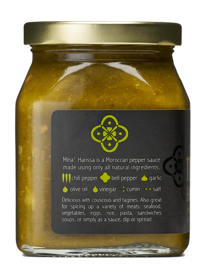 A staple on Moroccan tables, harissa is a traditional pepper sauce that elevates any dish, from tagine and couscous to meats, seafood, eggs, pastas and soups. Our spicy green harissa is a contemporary twist on the classic red condiment, offering distinctive heat and a hint of cumin